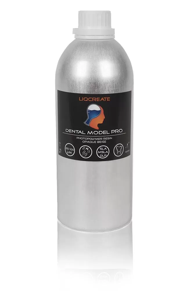 Liqcreate Dental Model Pro Beige ir matēts, necaurspīdīgs smilškrāsas fotopolimērs. Matētā virsma uzsver zobu rakstu dziļumu un detaļas, sniedzot lielisku skatu uz griezumiem un citām svarīgām detaļām. Pateicoties zemajai saraušanās un izmēru stabilitātei un precizitātei, sveķi ir piemēroti implantu un iztaisnošanas kapu modeļu ražošanai. Turklāt 3D drukātie zobārstniecības modelis Pro Beige modeļi ir ideāli piemēroti kroņa un tilta veidošanai.Liqcreate Dental Model Pro Beige ir viegli lietojams atvērtos SLA, MSLA un DLP 3D printeros ar diapazonu no 385 līdz 420 nm.