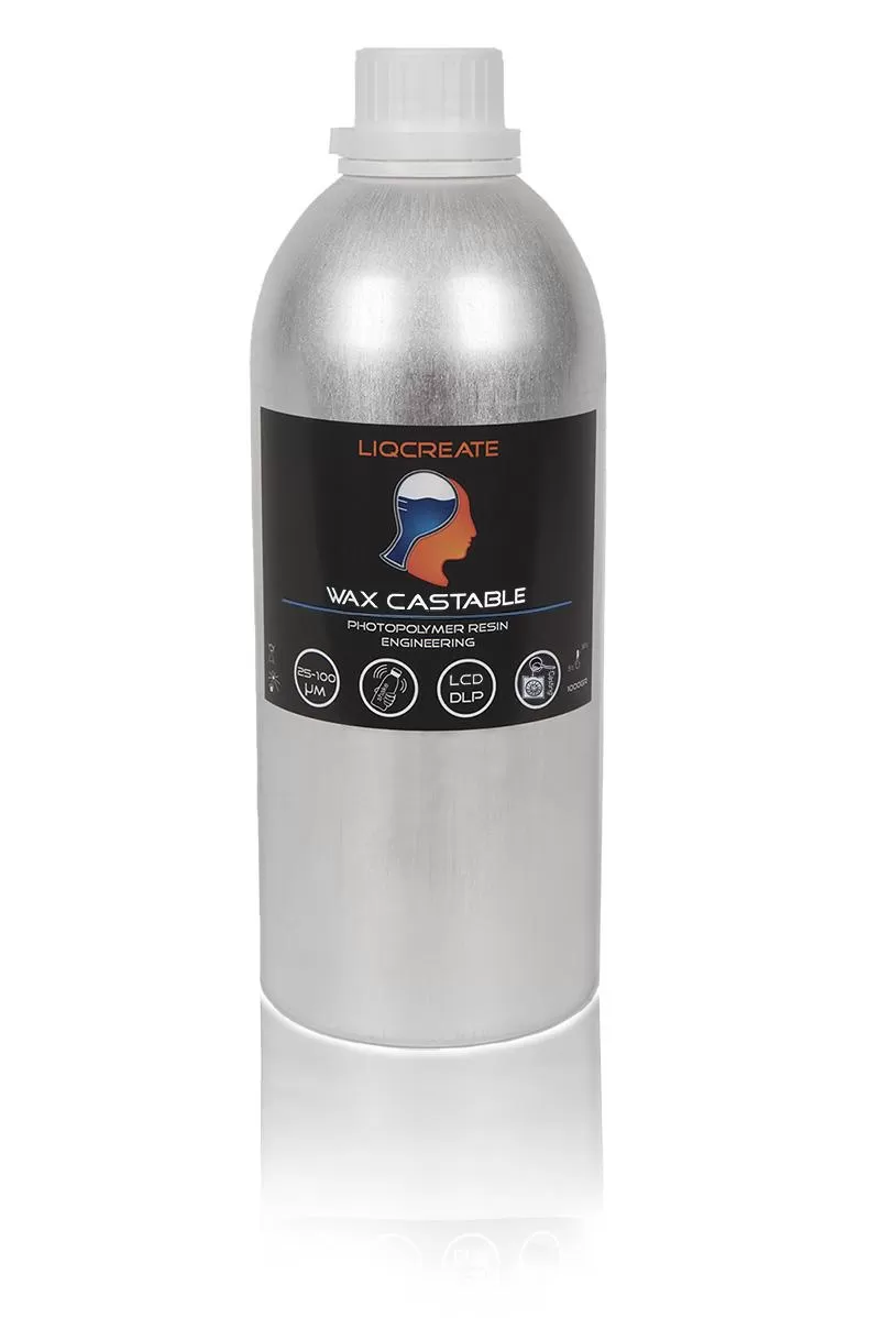 Liqcreate Wax Castable ir vaska bāzes fotopolimēru sveķi, kas ir ideāli piemēroti zobārstniecības un rūpniecisko detaļu ražošanai ar tiešo ieguldījumu liešanu.3D drukātas detaļas no šī materiāla uztver sarežģītas funkcijas un parāda spilgtas detaļas. Šis vaska materiāls nodrošina gludu virsmu ar tīru apdegumu, lai nodrošinātu uzticamu formēšanas procesu.