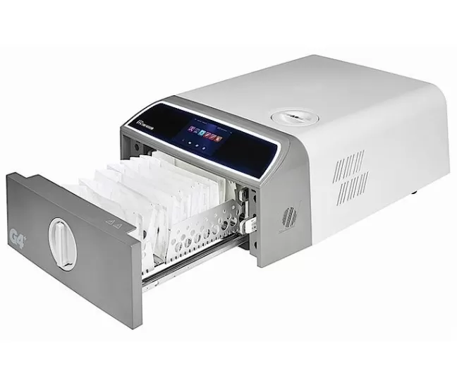 STATIM B G4+ autoklāvs ar 6 litru sterilizācijas kamera aizņem maz vietas. Tai ir moderns dizains un elastīgas sterilizācijas iespējas. 2 kārtridžu vai 12 maisiņu ietilpība atbilst jebkuras klīnikas sterilizācijas vajadzībām. Turklāt, izmantojot daudzpusīgo B ciklu, jūs varat sterilizēt un žāvēt tekstilizstrādājumus, iesaiņotus un neiepakotus instrumentus un dobus instrumentus mazāk nekā 27 minūtēs.