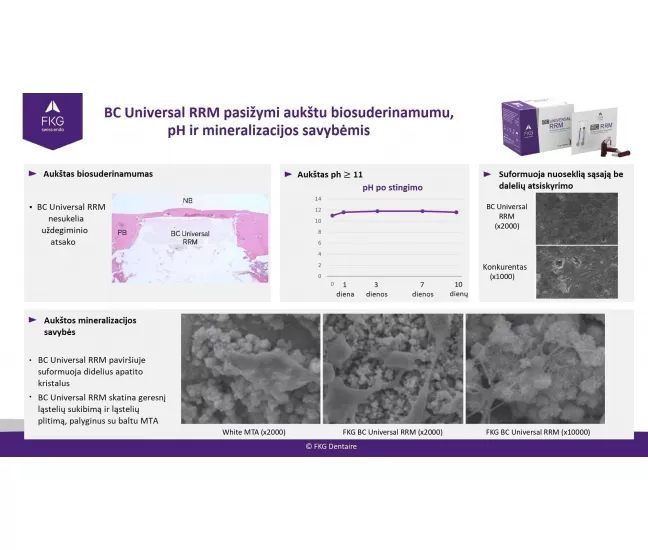 BC Universal RRM ir augsta biosaderība, pH un mineralizācijas īpašības: