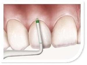 Ja balts nav redzams, izmantojiet zaļo zondi tādā pašā veidā, un, ja zaļā krāsa ir redzama caur smaganu audiem - tas nozīmē, ka biotips ir vidējs.