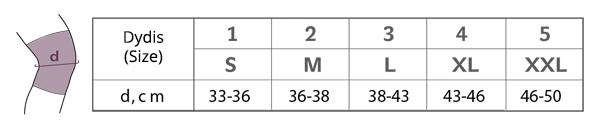 Izmēru izvēle: 1 (S); 2 (M) ; 3 (L) ; 4 (XL), 5 (XXL).