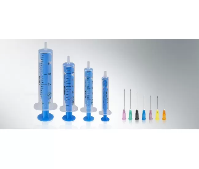 2 parts syringe, 5 ml, Luer Slip with needle 22G, 100 pcs2 parts disposable syringes with Luer Slip connector and needle 22G.