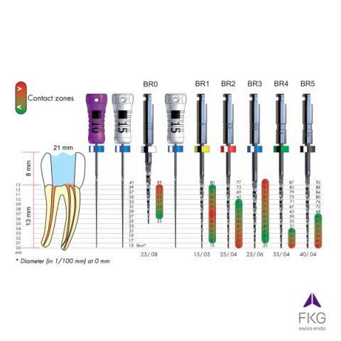 BioRace BR0 25/.08, 19 mm, 6 pcs.In the majority of cases, it has been found that, to achieve adequate elimination of bacteria from the root canal, the apical third of the canal should be treated with the minimum given sizes, ISO 35 or 40.