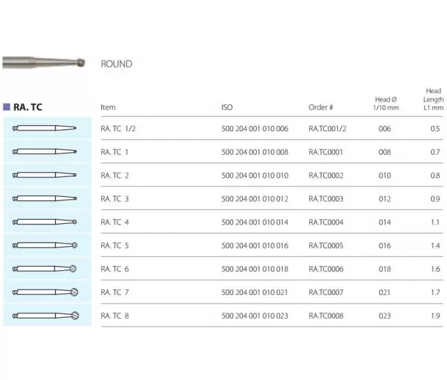 Carbide bur RA.TC 1/2-8 for contra-angle handpiece (the price is for 1 piece, in a package of 5 pieces)