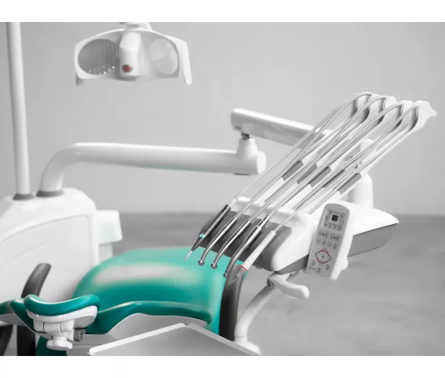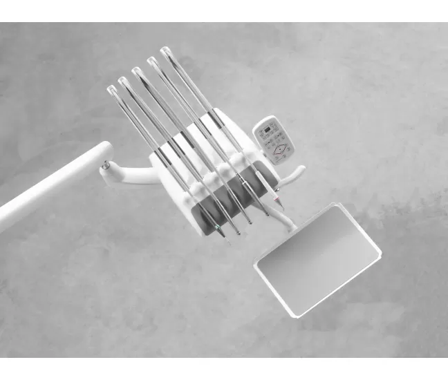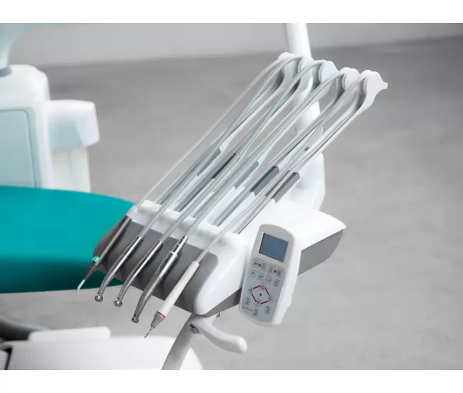 Multifunctional pneumatic pedal: control for instrument activation (even for the electric micromotor), chair movement joystick, water activation switch, basin and glass activation button, chip air button.