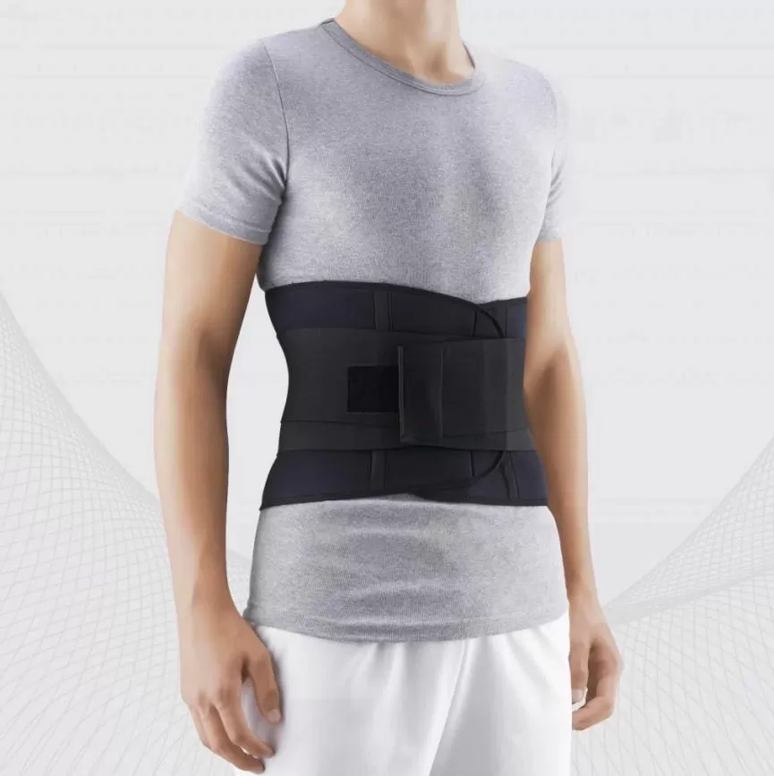 Elastic medical neoprene belt for lumbar spine fixation with reinforcement bands, TONUS 0312Recommended as a preventive medical aid for external fixation of the lumbar spinal section and measured compression of the muscles.