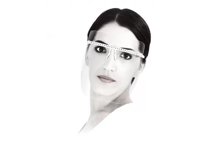 Face shield with frame laStoria (1 frame + 2 shields + 1 headband)The iconic and elegant Vista-Tec face shield, appreciated by dental and health professionals since its conception in 1989, now redesigned