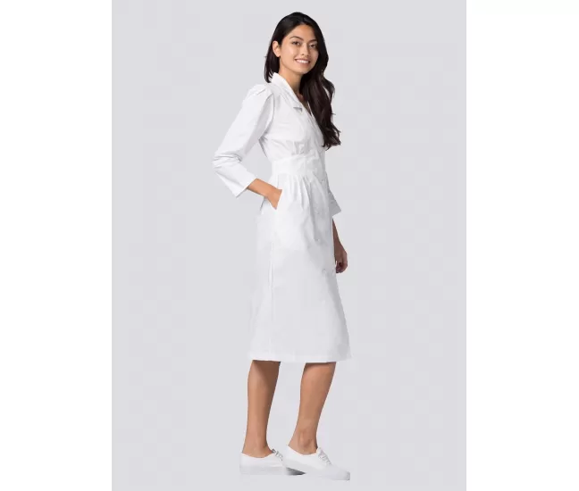 Fitted Midriff Dress 2810Button-front, long sleeves, double breasted dress is shaped by front and back princess seams.