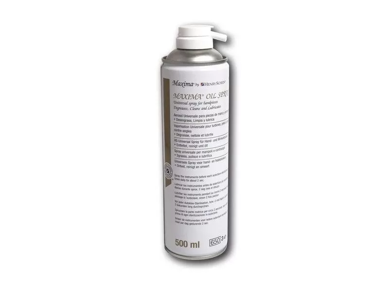 Handpiece oil spray Maxima, 500 mlUniversal cleaning and care spray for handpieces and angle pieces, turbines with air and ball bearings.