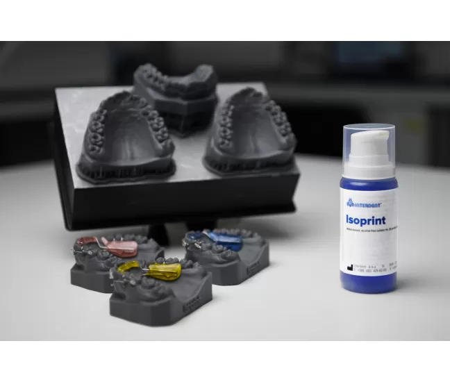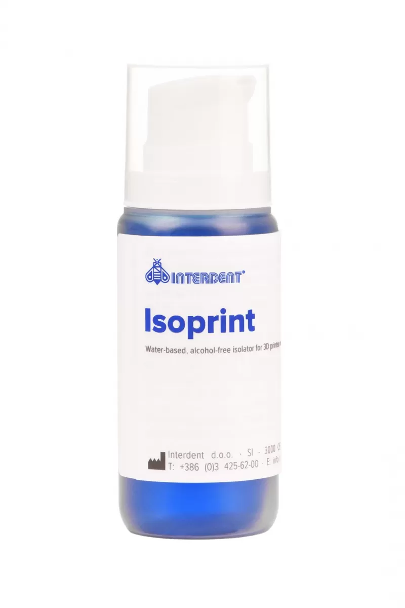 Isoprint is a water-based, alcohol-free isolator intended for the isolation of SLA/DLP 3D printed models when applying cold polymerizing acrylic masses. It provides good insulation and is easily removed under warm water.Package: 100 ml.
