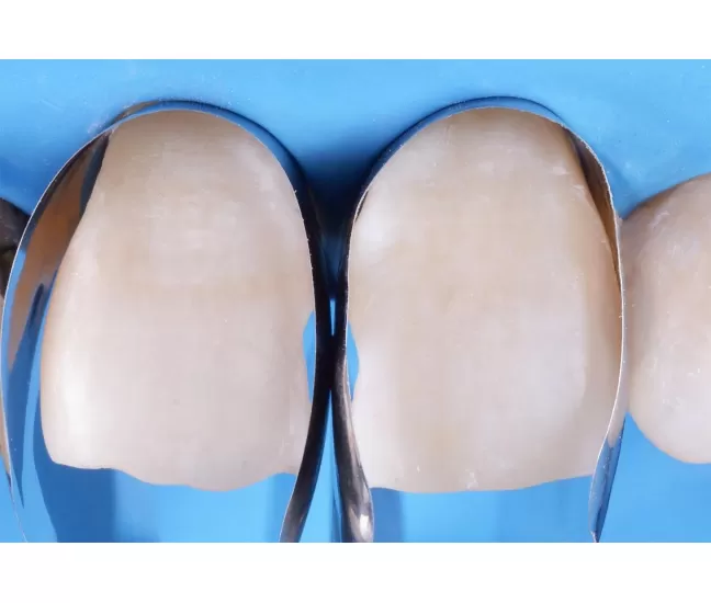 Unica, thanks to its countoured shape, adapts correctly to the different morphologies of anterior teeth and makes it possible to restore interproximal and cervical margins at once, even in presence of rubber-dam or gingival retraction cords, thus reducing chair-time significantly. Furthermore, Unica anterior matrix, once positioned, allows to easily visualise the final shape of the restoration.
