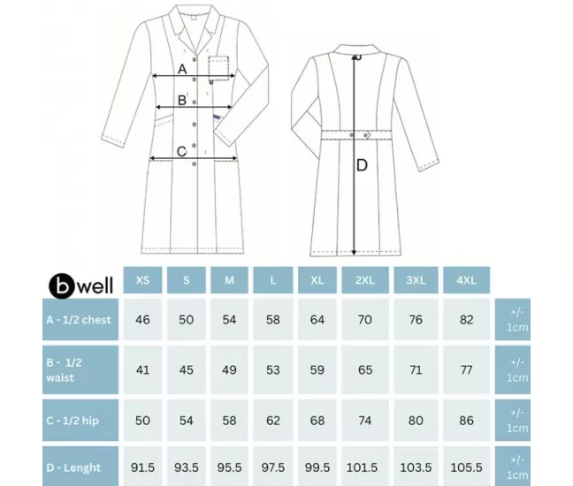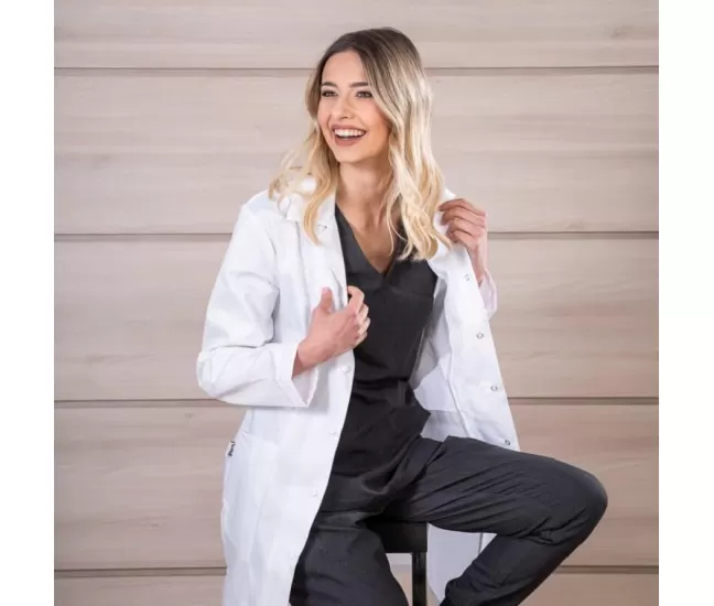 Medical coat VALERIA, whiteB-well women's medical coat VALERIA is a white, fitted coat with snap button closure and with CL 60°C technology to preserve the sparkling white color.