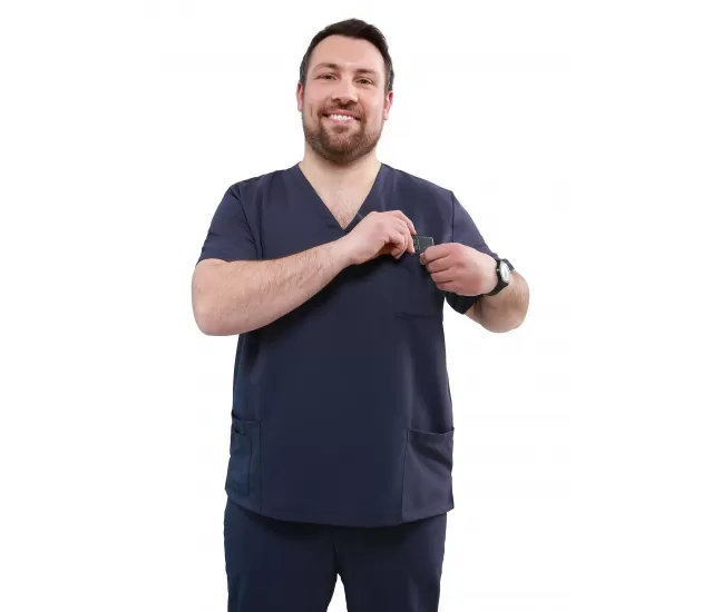 Medical top SMART unisex, dark blueThe NO IRON uniform immediately ready to wear QUICK – Medical Uniform is the NO IRON uniform in innovative technical fabric: a soft and silky microfibre that can be machine-washed with short cycles, dries quickly, does not wrinkle and you can wear it immeidately!