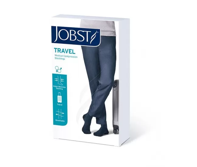 Medical travel compression stockings to the knees, covering the toes, CCL1, JOBST Travel SocksThese socks help reduce the health risk associated with long distance travel by preventing swollen ankles and feet and reducing the risk of traveler’s thrombosis. They improve your circulation and make your legs feel great during / after traveling.