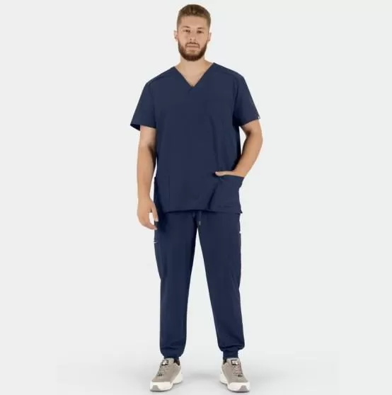 Men's scrub set MATTEO, NavyMATTEO men's scrub Set consists of a tunic and jogger pants. The set is made of innovative material, a mixture of polyester and elastane, which contribute to its extremely easy maintenance.