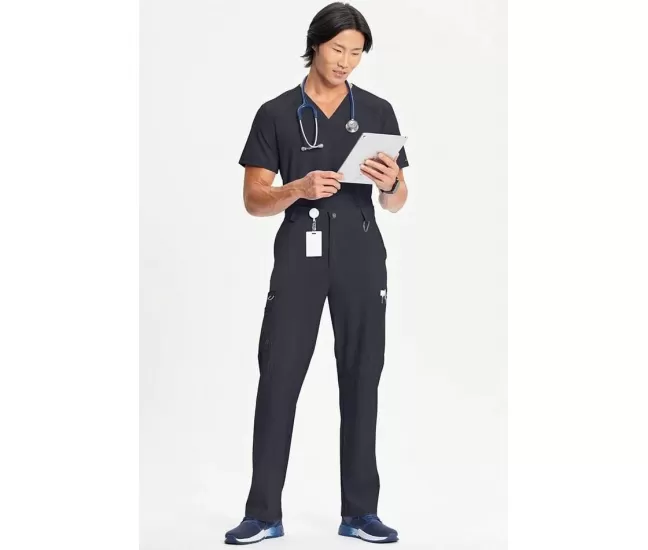 Men's Zip Fly Cargo Scrub Pant CK200A PewterUpgrade your workday wardrobe with the Infinity Men's Zip Fly Cargo Scrub Pant, combining tailored sophistication with everyday utility. Featuring a flat-front waistband with elastic at the back, an adjustable rib-knit drawstring and a functional zip fly with button closure, these pants deliver a secure yet polished fit. Six strategically placed pockets, including a double cargo patch pocket with a bungee loop, keep your essentials organized. Designed with a hidden inseam gusset and stylized knee seams for added flexibility and an athletic edge, these straight-leg pants are crafted from stretch poplin fabric with PROTX2® odor-fighting technology to keep you fresh and ready for anything.