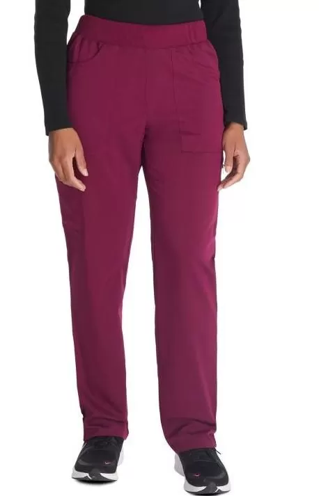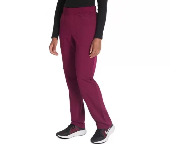Mid Rise Tapered Leg Pull-on Pant DKE135 in WineThis comfortable and functional mid rise pull-on pant features a tapered leg, a rib-knit waistband with encased elastic and inside drawstring for full waist support.