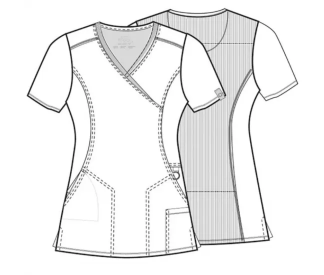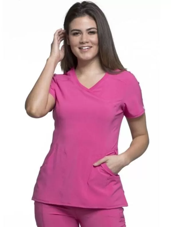 Mock Wrap Top CKE2625A in PinkA Contemporary fit mock wrap top features two set-in front pockets, a logo O-ring above left pocket, left scissor pocket, one interior pocket, front and back princess seams, and side vents.