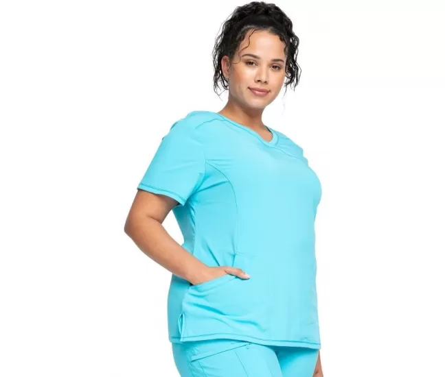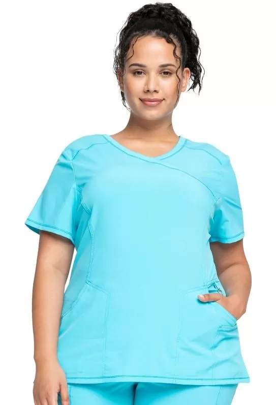 Mock Wrap Top CKE2625A in TurquoiseA Contemporary fit mock wrap top features two set-in front pockets, a logo O-ring above left pocket, left scissor pocket, one interior pocket, front and back princess seams, and side vents.