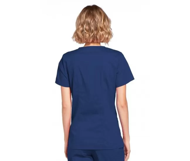 Mock Wrap Top WWE4728 in NavyA Modern Classic fit mock wrap top features front princess seams and double needle top stitch detail. Also included are front patch pockets, a right side pocket with a sectional pocket and I.D. loop, and a left side pocket with an instrument loop holder across pocket. Back princess seams and side vents complete the picture. Center back length: 27.