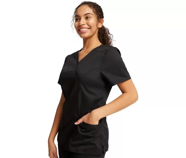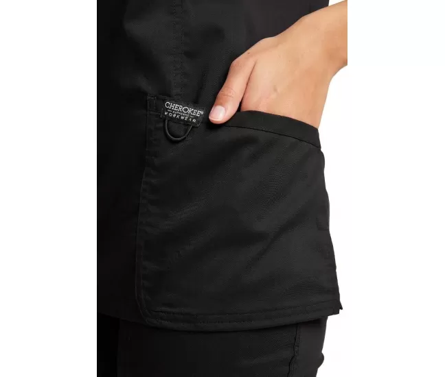 Mock Wrap Top WWE610 in BlackA Modern Classic fit mock wrap top features front shoulder yokes, two patch pockets, instrument loop, logo label with bungee loop, front and back princess seams and side vents. Center back length: 26.