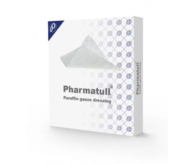 Paraffin Gauze Dressing, 10 x 10 cmPharmatull® is a low adherent paraffin gauze dressing made of cotton leno gauze impregnated with white soft paraffin.