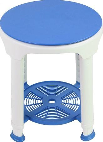 The round seat shape and small size allow this bath chair to fit into most, even small shower cubicles. In addition, the swivel seat provides greater mobility during bathing, and a small shelf under the seat allows you to store bathing accessories. Chair legs with rubber pads that prevent slipping on wet surfaces.