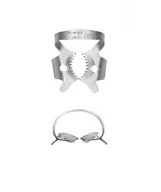 A complete line of Satin Steel Rubber Dam clamp.For upper and lower large partially erupted or irregularly shaped molars.