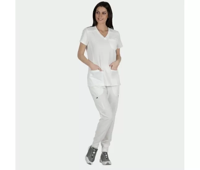 MAURI scrub trousers are elegant women's pants made of polyester, viscose and elastane, which makes them extremely functional in both work and home environments and allows a lot of freedom of movement and comfort throughout the day.