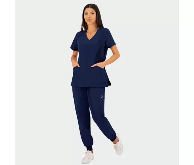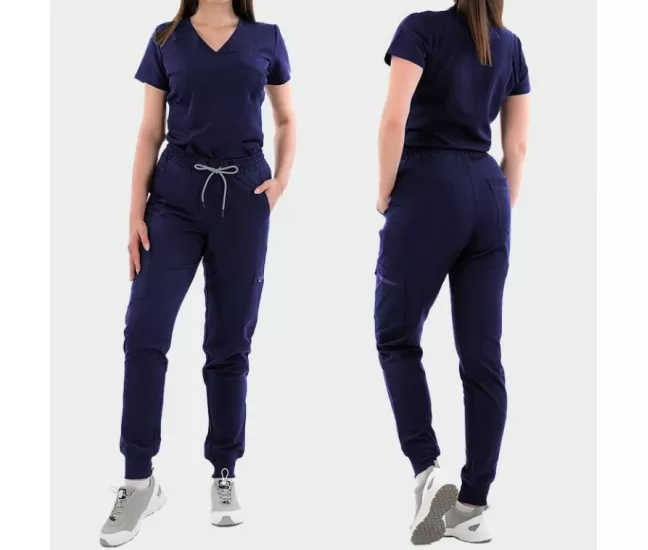 Scrub trousers RICCI, NavyScrub trousers RICCI is a new, top model of the B-well brand. Women's trousers made of light material, a combination of polyester, viscose and elastane.