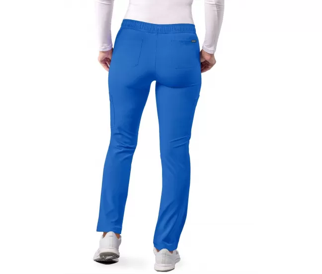 This contemporary fit, skinny leg, mid-rise cargo pant, sits right below your natural waist, features a total of eight pockets for maximum secured storage.Two deep front slashed pockets, one small internal pocket on left side, a large cargo pocket on the right side with scissor pocket, a large cargo zipperd pocket on the left side and two curved back pockets.