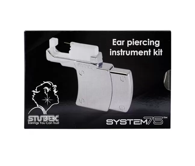 Studex 75 Chrome Piercing Instrument KitTwo chrome System 75 ear piercing apparatuses in a plastic carrying case.