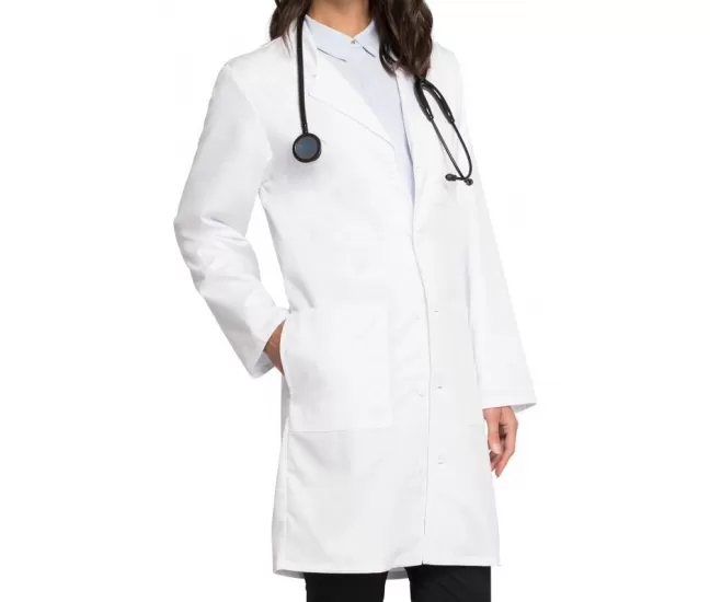 Unisex Lab Coat WWE4403 in WhiteA Unisex Modern fit, button front lab coat features a notched lapel, a chest pocket, and two lower patch pockets with side entry for easy access to pant pockets.