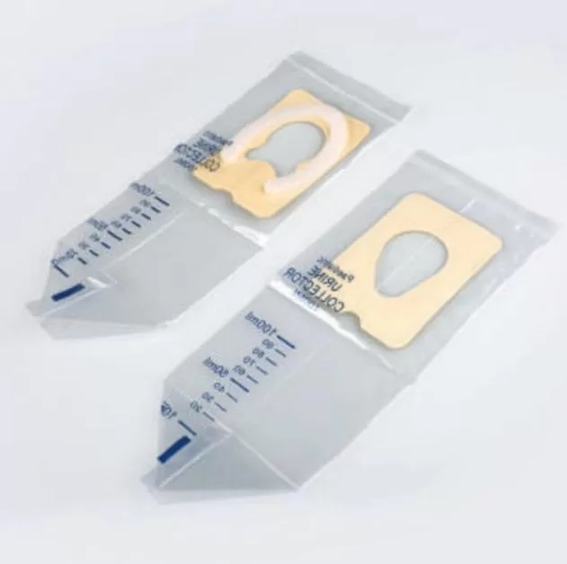 Urine bag, pediatric, disposable, sterile, 100ml, 1 pcs.For urine sample collection in infants and small children.