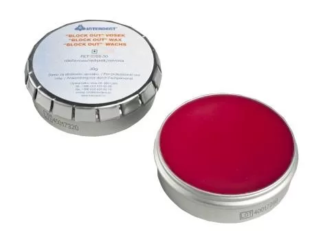 Wax for blocking out undercuts of stone models and for model analysing when producing partial denture.High dropping point of 86°C makes wax usable also when duplicating with thermo-reversible duplicating material.