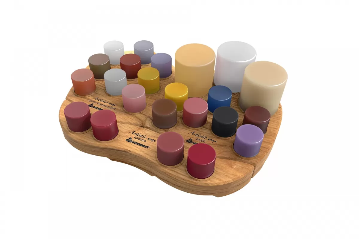 Wax for aesthetic modelling and wax-up, for analysis of the shape and colour of the tooth.The existing wax colours are very similar to ceramic and their effects which allow imitation of modelling teeth in wax, comparable to one in ceramic. Dental technicians have the possibility to learn how to veneer ceramic and effects through wax.
