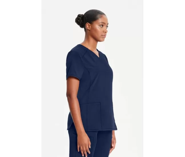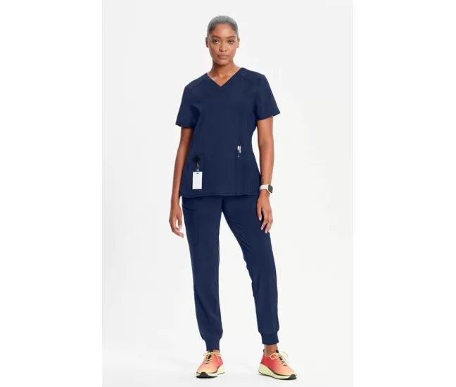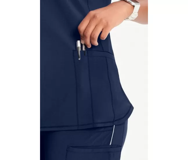Women's 2-Pocket Shirttail Knit V-Neck Scrub Top CK865A NavyReady for anything. The Infinity Women's 2-Pocket Shirttail Knit V-Neck Scrub Top is your go-to for comfort and durability shift after shift. With princess seams and a curved shirttail hem, it’s designed to flatter while keeping you comfortable all day. The rib-knit inset at the neckline adds an extra touch of softness, and the two welt pockets (with a pen slot!) make it easy to keep your essentials close. Made with stretch poplin fabric and odor-fighting PROTX2® technology, this top stays fresh and keeps up with whatever your day throws at you. It’s dependable, stylish and ready to work as hard as you do.