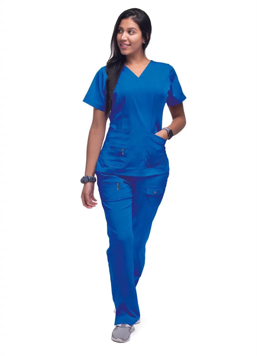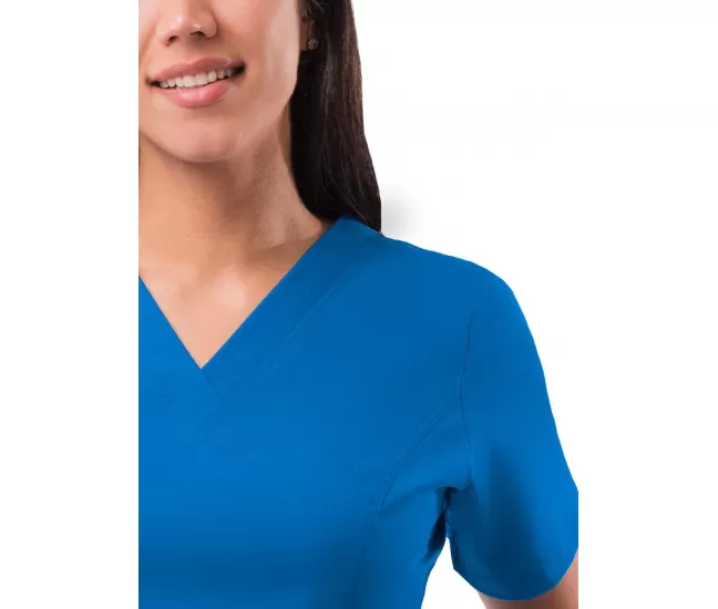 Women's Elevated V-neck Scrub Top P4212 Royal BlueBeautiful details such as a double stitched neckline, back and front curved princess seams, shaped patch pockets and super soft stretch fabric truly make this scrub top a crowd favorite.