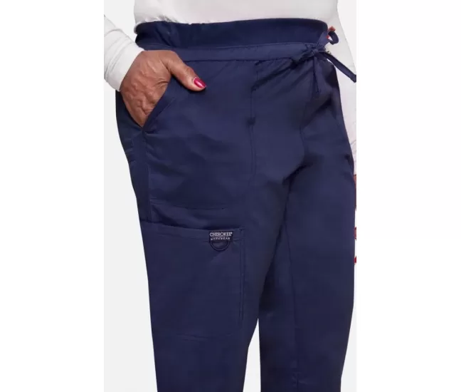 Women's Tapered Leg Drawstring Scrub Pant WW105 NavyThe Women's Tapered Leg Drawstring Scrub Pant from Workwear Revolution offers a classic silhouette with a bonus cargo pocket perfect for your phone, notepad or anything else you want to keep handy.
