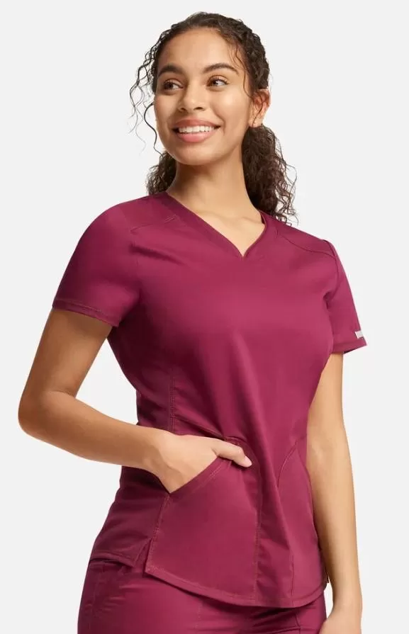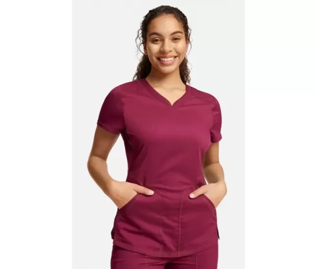 Women's V-Neck Solid Scrub Top WW601 WineThe sleek and sporty Women's V-Neck Solid Scrub Top from Workwear Revolution has breathable mesh panels throughout for long-lasting comfort and mobility. A modern, feminine neckline rounds out this scrub staple.