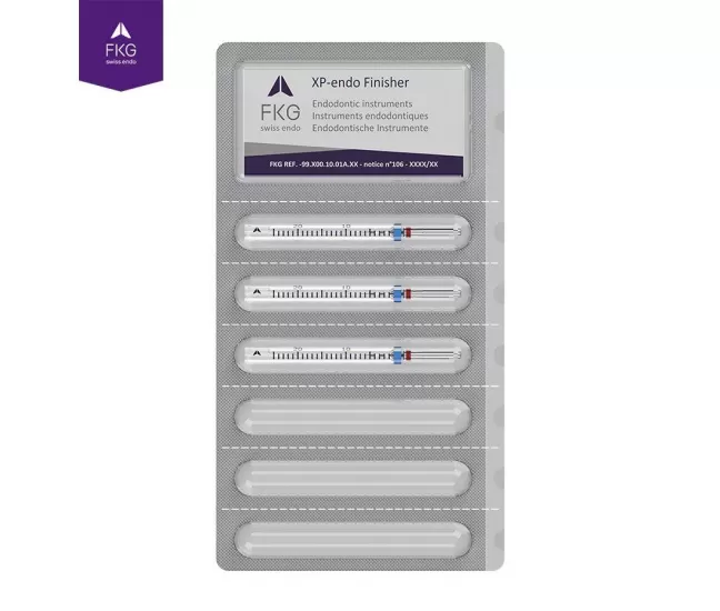 Because of its small core size – ISO 25 in diameter – and its zero taper, XP-endo Finisher benefits from incredible flexibility and shows unparalleled resistance to cyclic fatigue. In addition the file will contact and clean the dentine but NOT change the original shape of the canal. With XP-endo Finisher, get an optimal cleaning of the root canal while preserving dentine. Universal instrument that can be used following any root canal preparation of diameter ISO 25 or more.