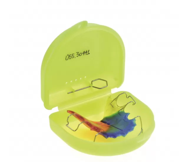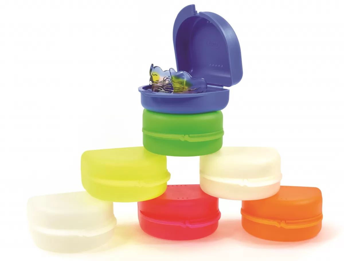 Orthodontic box, small 2.5 x 6.5 x 6.5 cmManufactured from non toxic, unbreakable plastic.