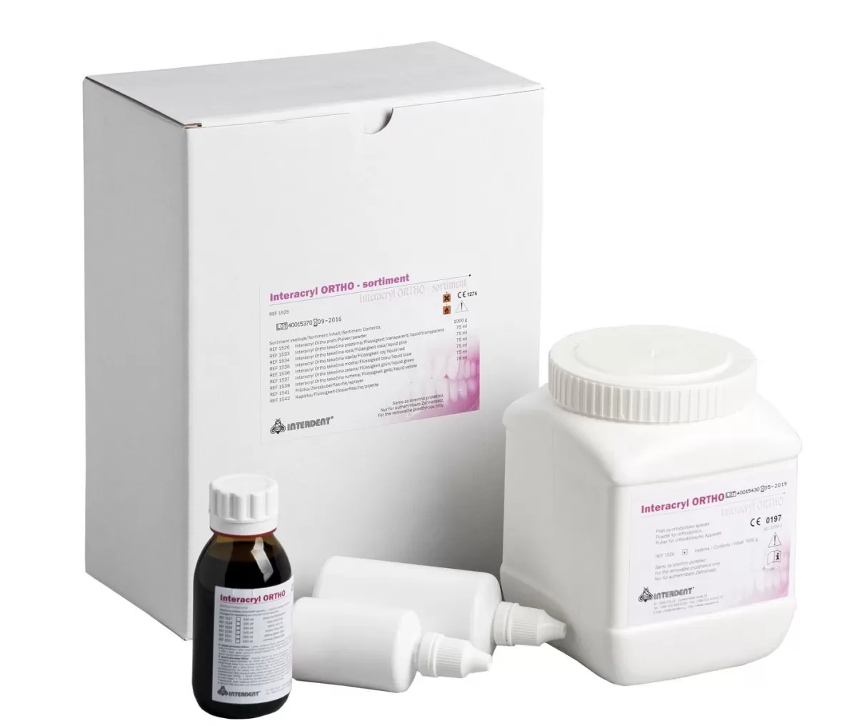 Interacryl Ortho is a cold-curing, cadmium-free, methyl methacrylated for orthodontic appliances.Complies EN ISO 20795-2.