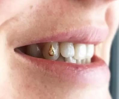 Tooth jewelry Droplet DiamondDiamond in middle of gold droplet.