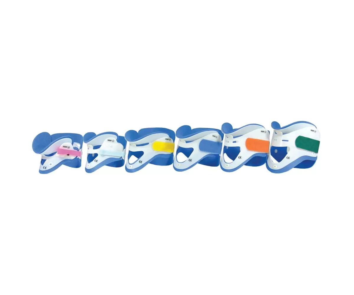 First aid collar one piece size MediumOne piece plyethylene cervical collars. Washable internal part, fixed by plastic rivets. With a central tracheal hole. Velcro band secure a quick and adjustable fixing.