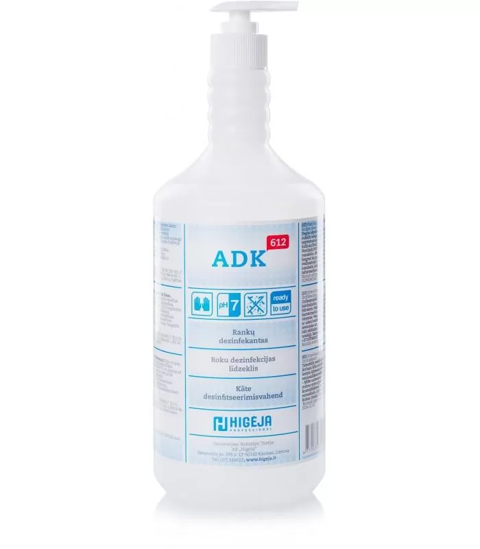 Hand sanitizer, ADK-612, 1 LThe tool is intended for hygienic disinfection of hands and skin in health care and public institutions, food industry, public catering companies and households.