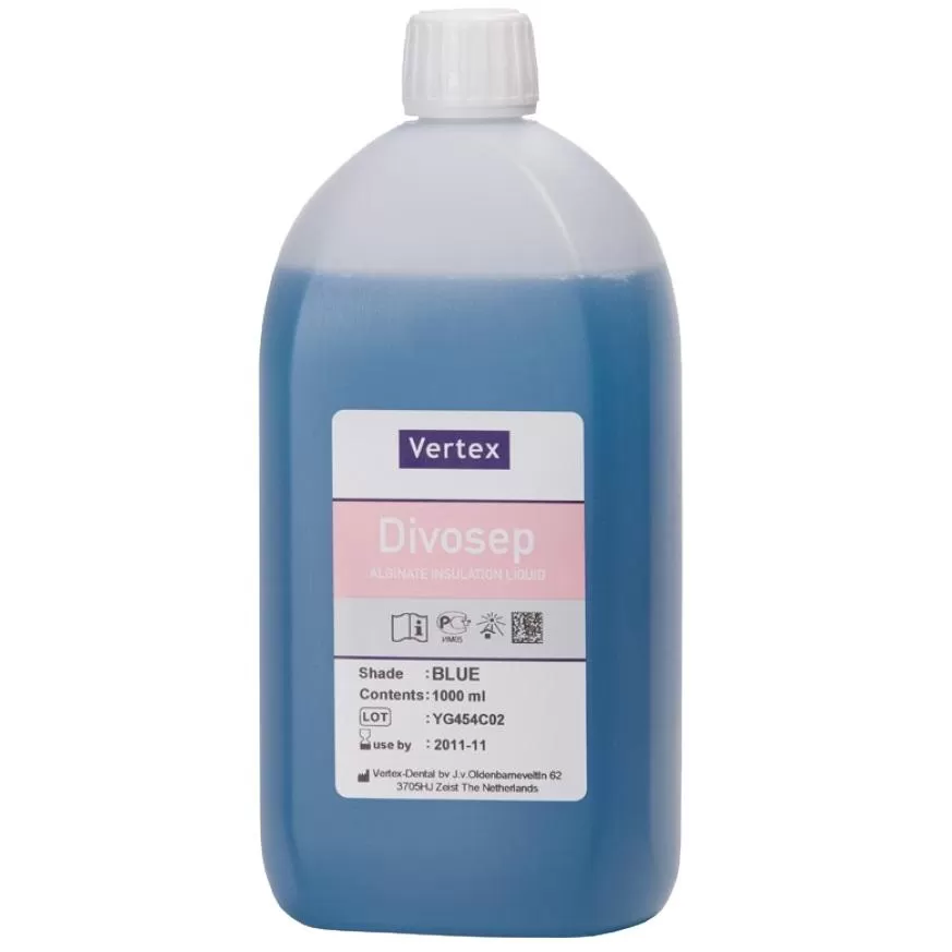 Vertex™ Divosep is an alginate based separation solution. Divosep blue is suitable for both packing/pressing technique and cast moulding. The high quality of the raw materials guarantees optimum separation with both techniques.Separating plaster from denture base material.