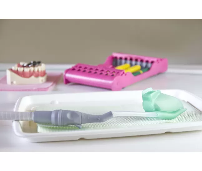 A flexible bite block which keeps the patient’s mouth open without feeling unpleasant.