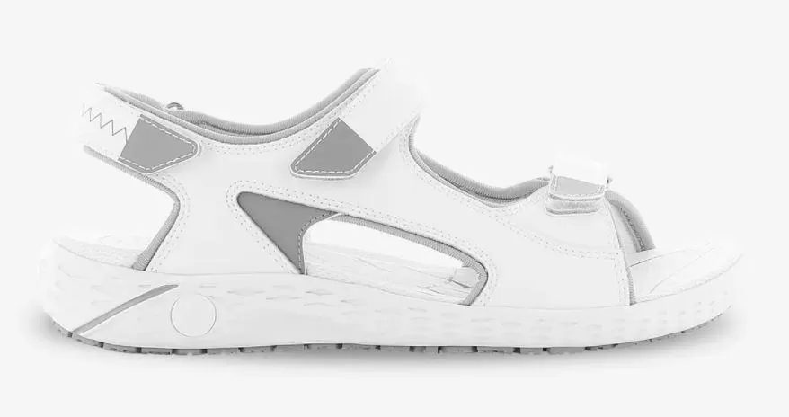 ODILE - extremely comfortable sandals designed to be worn by people working in various fields of healthcare. These are lightweight MOVE design sandals with an antistatic ESD and a non-slip sole made of flexible, lightweight EVA rubber that ensures shock absorption. The lining is made of air-permeable COOLMAX material, which protects against sweating. The upper is made of easy-care leather. The anatomically shaped insole and adjustable VELCRO heel area ensure comfort and excellent foot support. 3 cm high heel. Standard: CE EN 20347.